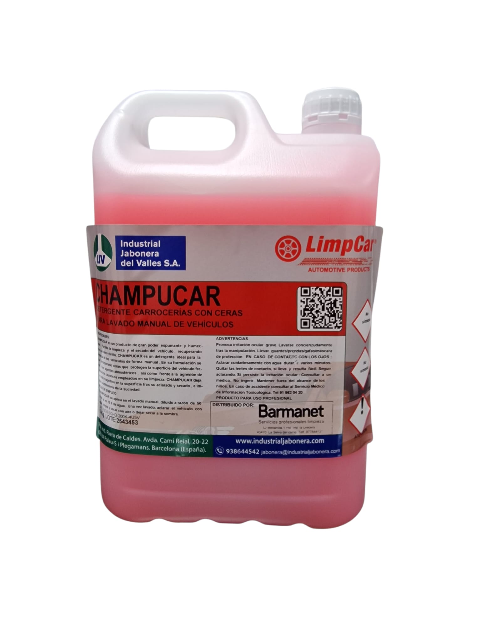 El detergente de carrocerías con ceras, para el lavado manual de vehículos Champucar de Barmanet, es un producto de gran poder espumante y humectante. Facilita la limpieza y el secado del vehículo, recuperando éste su color y brillo. Es un detergente ideal para la limpieza manual de su vehículo. En su formulación se han incorporado ceras que protegen la superficie del vehículo frente a los agentes atmosféricos, así como frente a la agresión de productos cáusticos empleados en su limpieza. Champucar deja un brillo magnífico en la superficie tras su aclarado y secado e impide la adherencia de la suciedad.